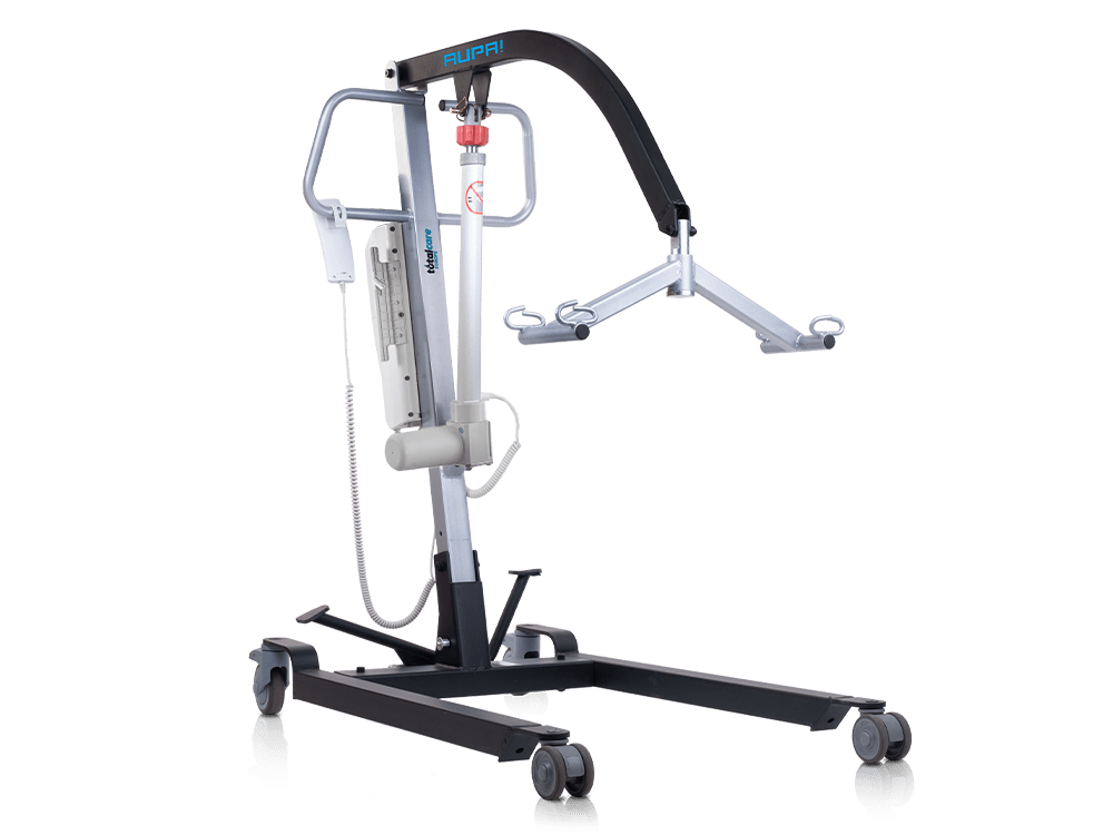 Las grúas AUPA ofrecen un funcionamiento muy silencioso, un sistema de elevación eléctrico estable, ruedas de alta maniobrabilidad y un diseño inteligente que permite trabajar cómodamente en entornos domésticos, residencias o centros sanitarios.