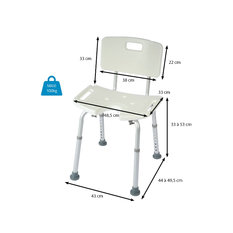 A diferencia del taburete, esta versión incorpora un respaldo ergonómico que proporciona un apoyo adicional, especialmente útil para personas con movilidad reducida o que necesitan mayor estabilidad durante el aseo.